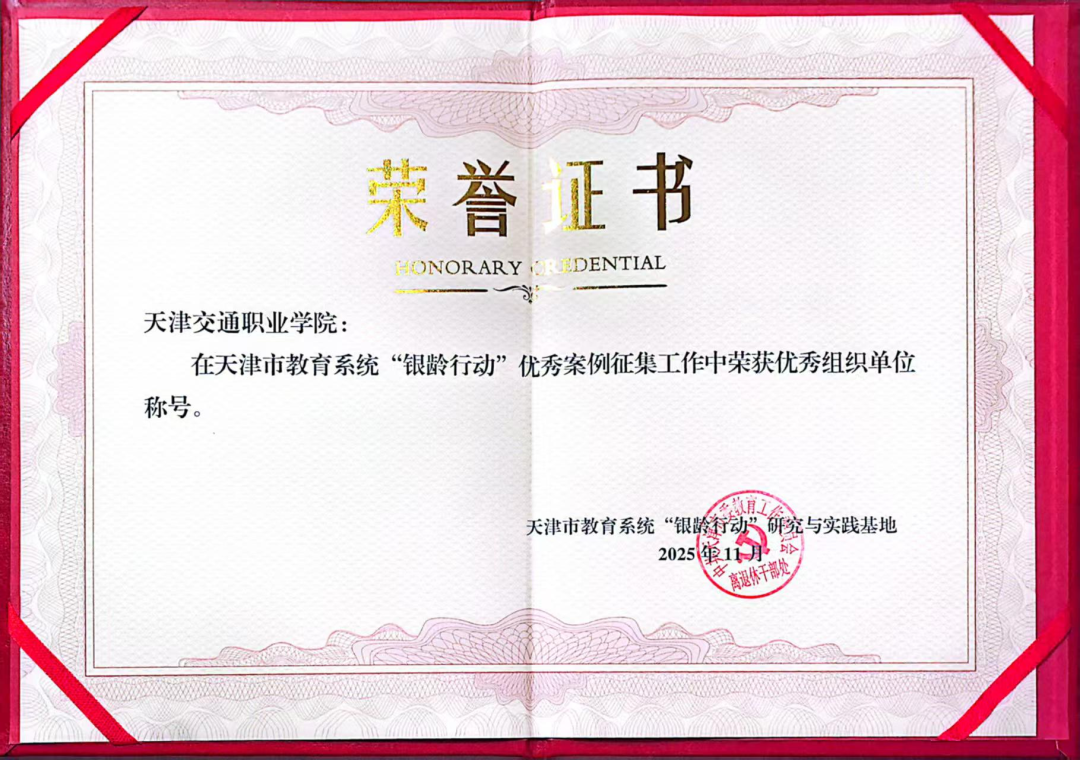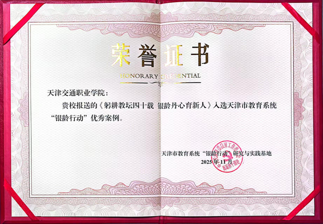 学院报送的《躬耕教坛四十载 银龄丹心育新人》入选天津市教育系统“银龄行动”优秀案例,学院荣获优秀案例组织单位荣誉称号。